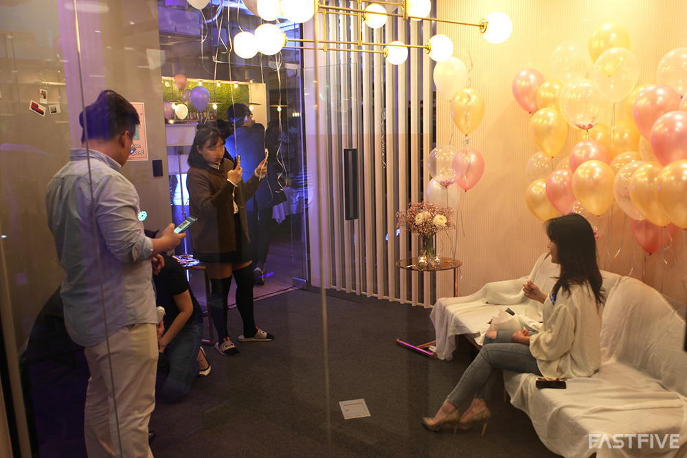 파티장 안쪽에는 신부대기실처럼 예쁜 포토존이 준비되어 있었는데요, 이곳에서 패스트파이브 매니저가 스마트폰 앱으로 사진 촬영하면 즉석사진을 뽑아드리는 이벤트가 진행 중이었습니다. 모처럼 만난 예쁜 공간에서 인생샷 많이 남기셨나요?