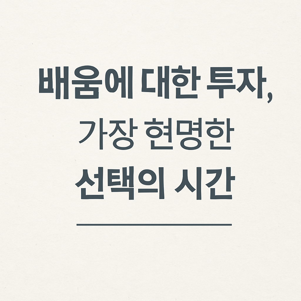 오늘, 당신은 또다시 선택의 문 앞에 서 있습니다. 시간과 배움, 그리고 미래를 위한 현명한 투자가 당신의 삶에 어떤 변화를 가져올지 한번 깊이 생각해 보시길 바랍니다.