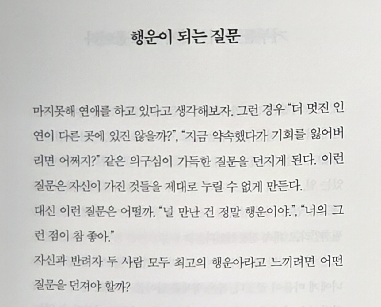 최고의 연인은 지금 만나는 그 사람입니다. 최고이자 최선의 배우자는 지금 당신 옆에 있는 그 사람입니다.