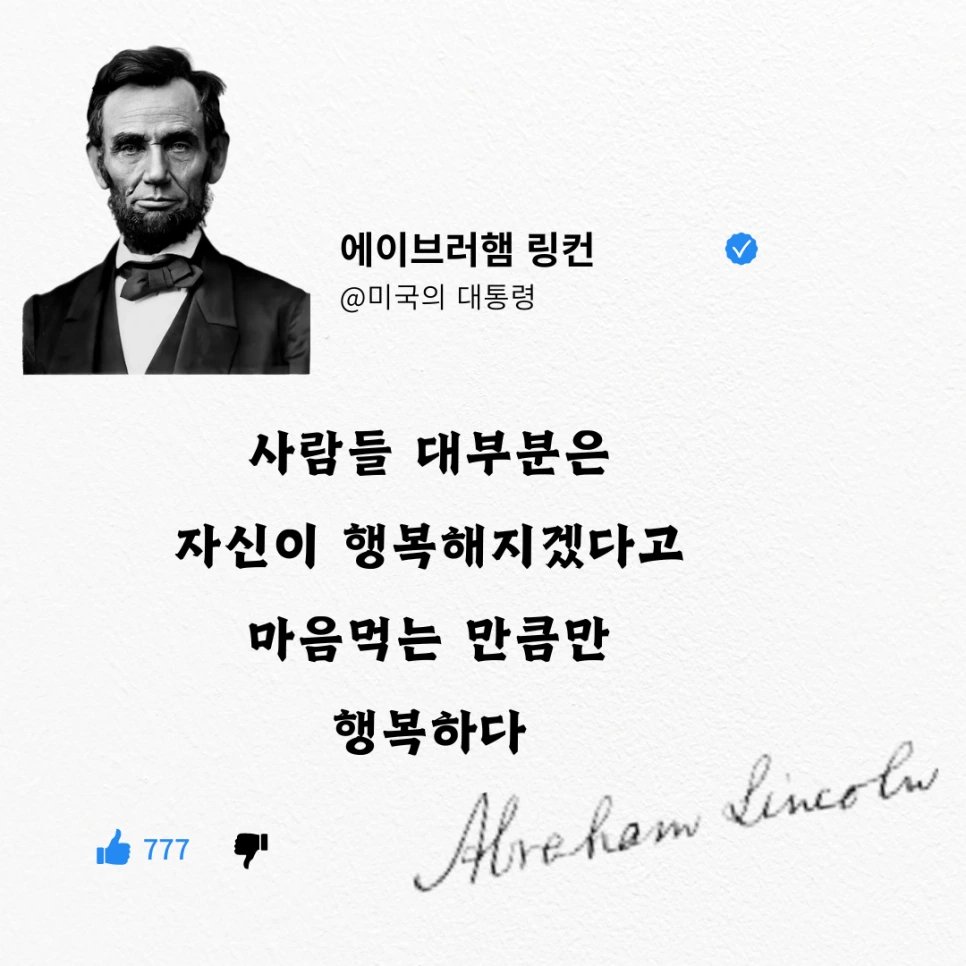 미국 5달러 지폐에 있는 링컨 대통령이죠. 저도 개인적으로 존경하는 분입니다.