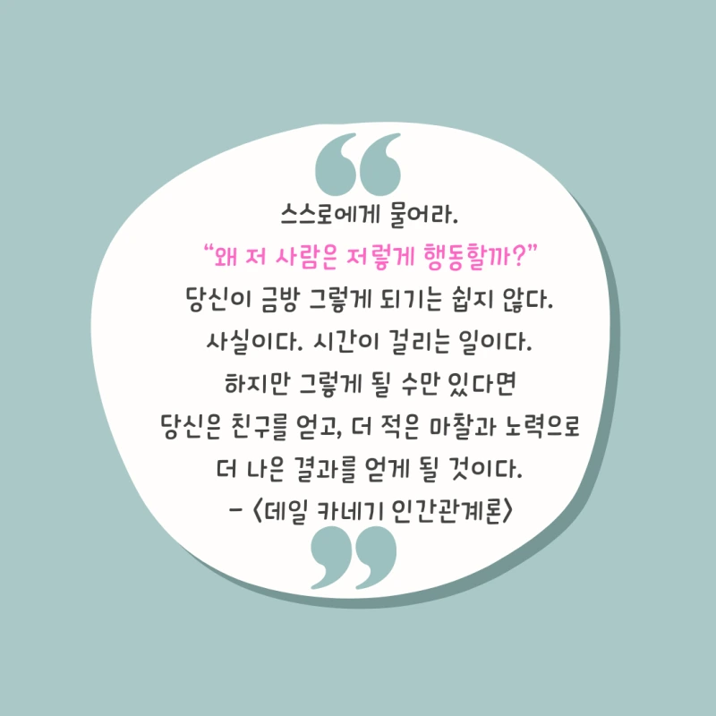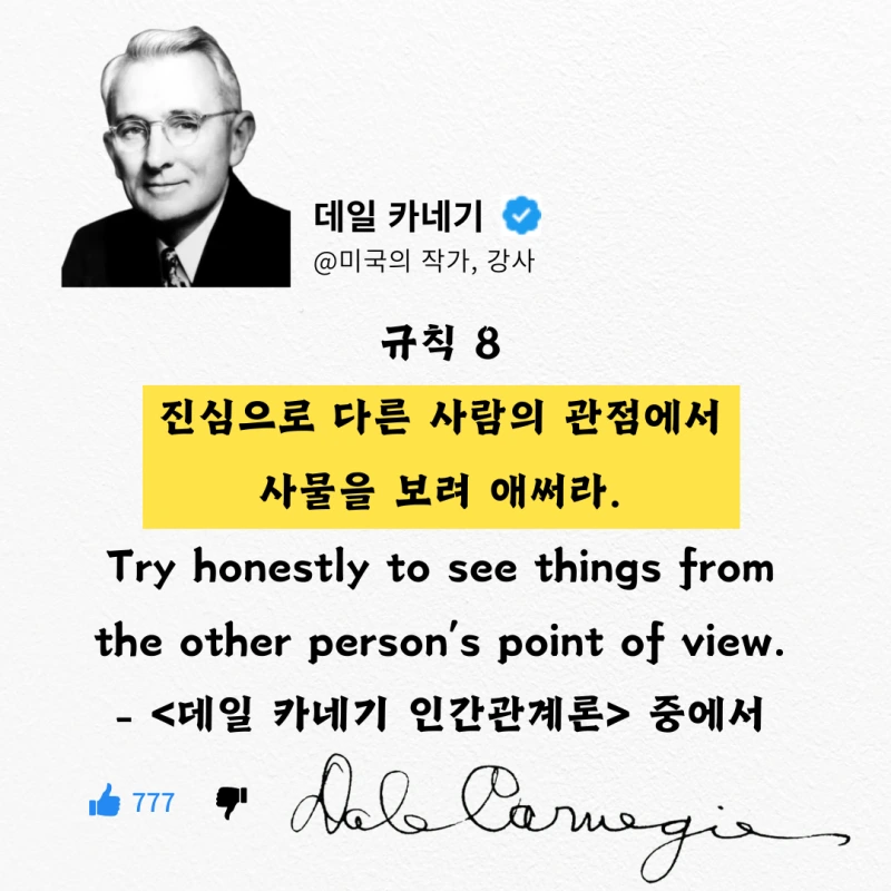 저도 데일 카네기 글에 동의해서 글을 쓰는데, 이 내용이 틀렸을 수도 있죠.
