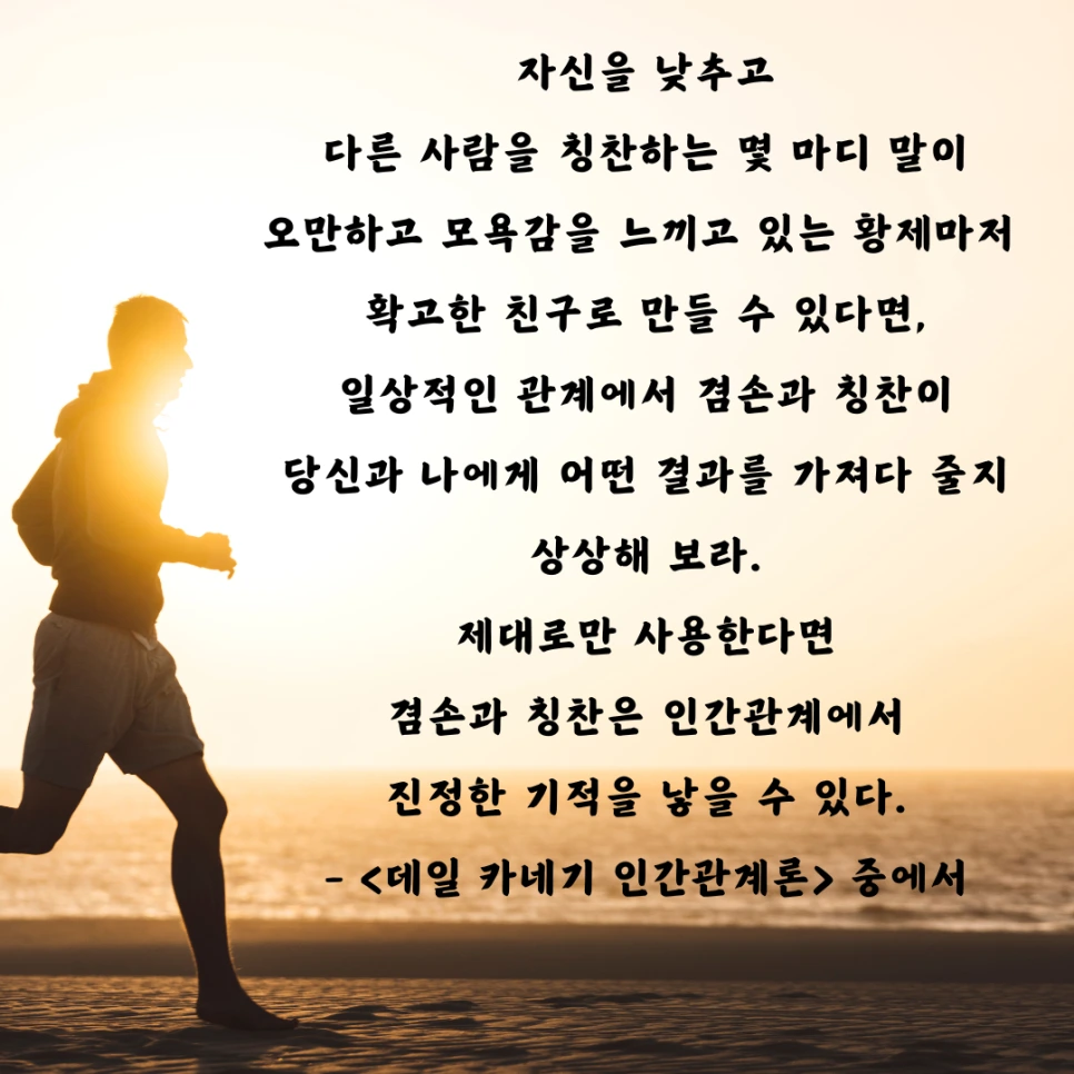 한 줄로 요약하자면, "스스로 겸손하게 행동하고 상대방을 칭찬하기"입니다.