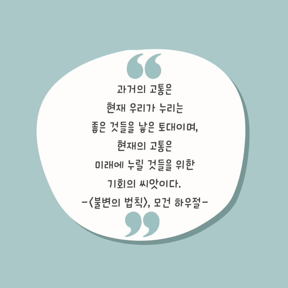 과거의 고통 덕분에 현재를 누릴 수 있고, 현재의 고통 덕분에 미래에 잘 살 수 있다는 이야기입니다.