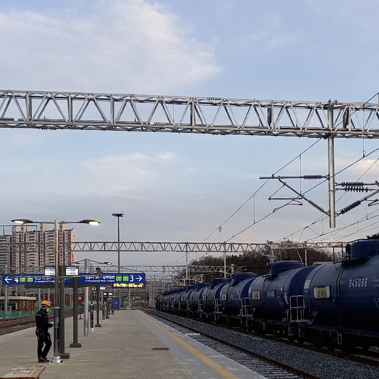 날이 저물 무렵 기차역 플랫폼으로 나왔다.