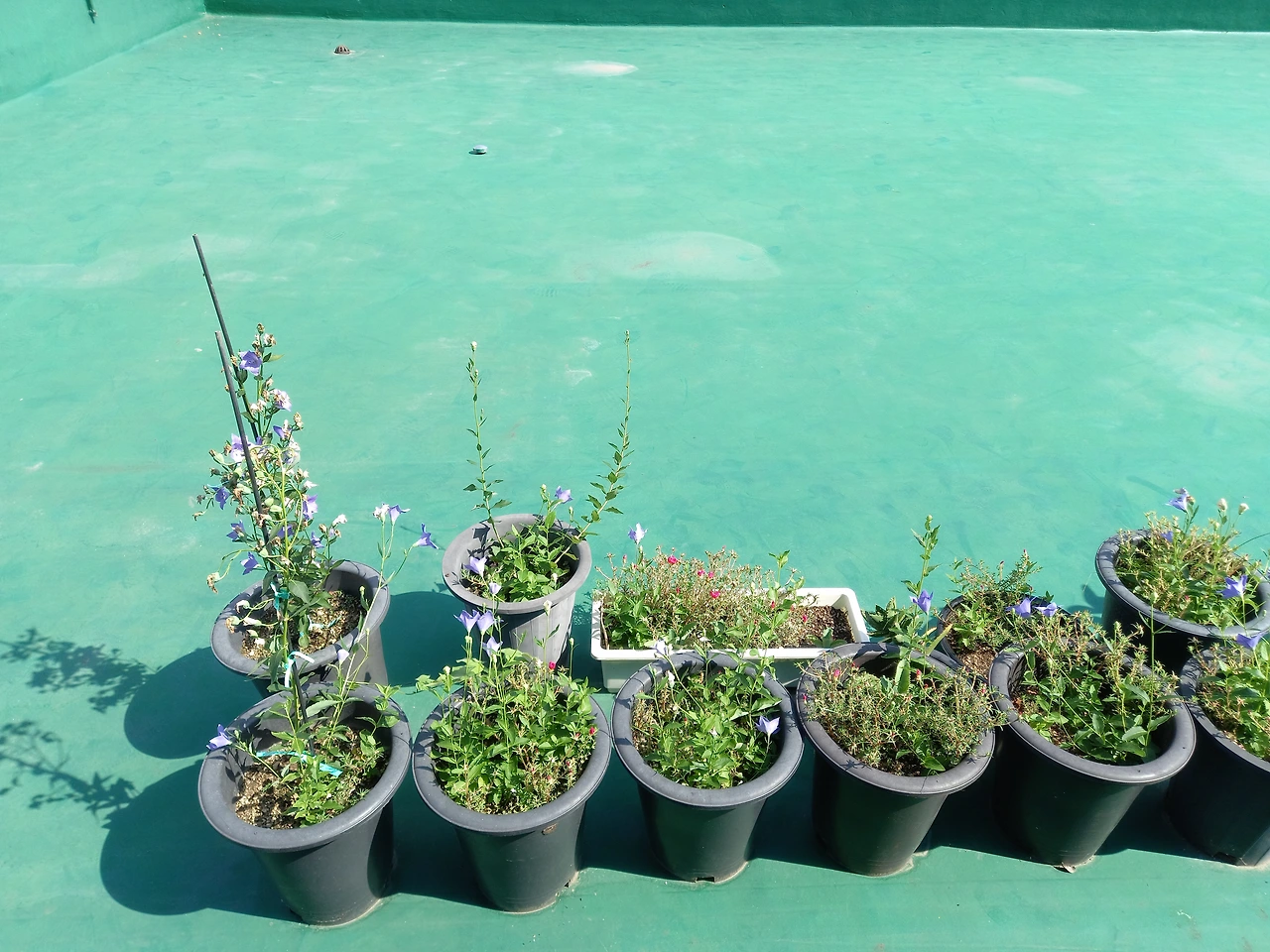 땡볕에 내놓은 화분들.