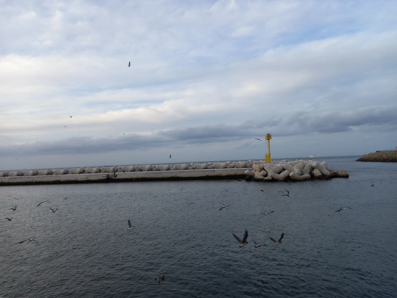 방파제에 기러기들이 빈틈없이 붙어있음.
