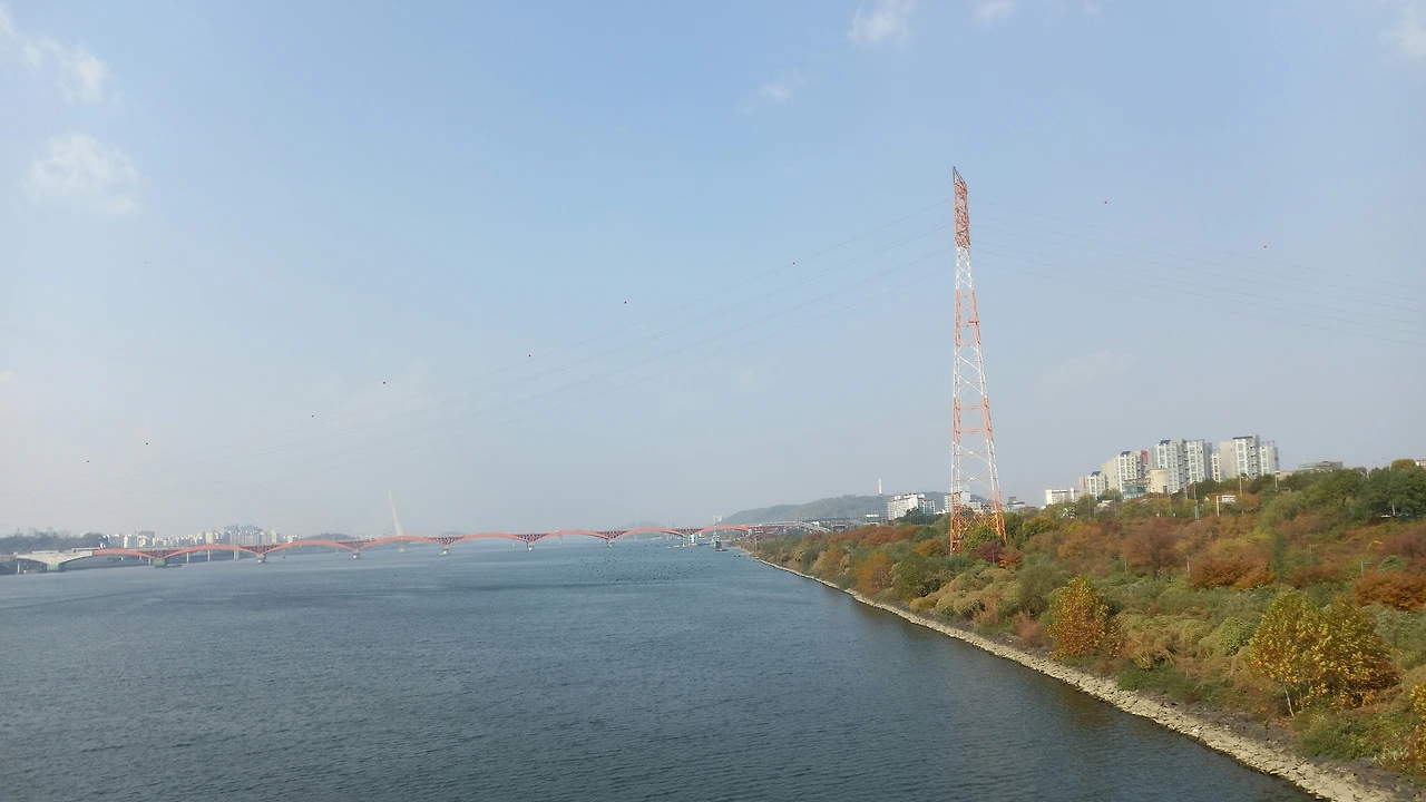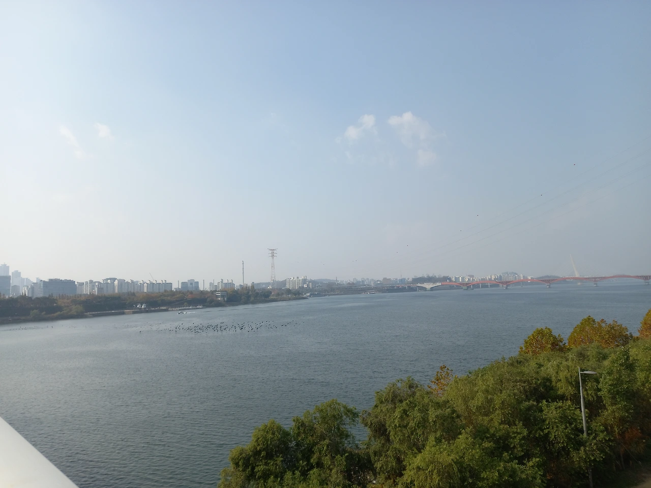 워낙 햇살이 좋아서 하늘도, 강물도 파랗게 보였는데.