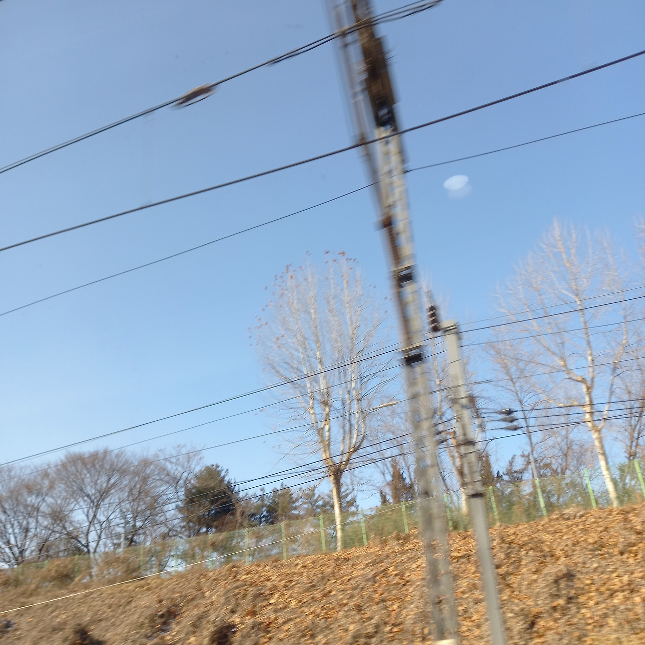 훈훈한 기차 안에서 나른하게 바라보는 햇빛 밝은 바깥은 봄인