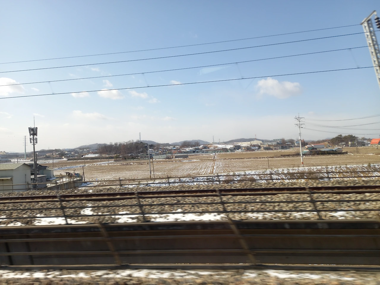 광주 부근부터는 잔설이 남아 있어도 들판에는 새싹이 돋아 파르스름하고.
