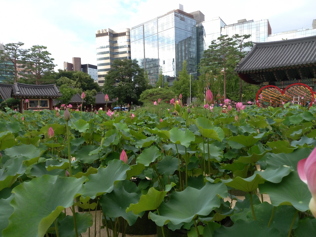 서울로에 내놓은 수많은 아름다운 연꽃들 중에서