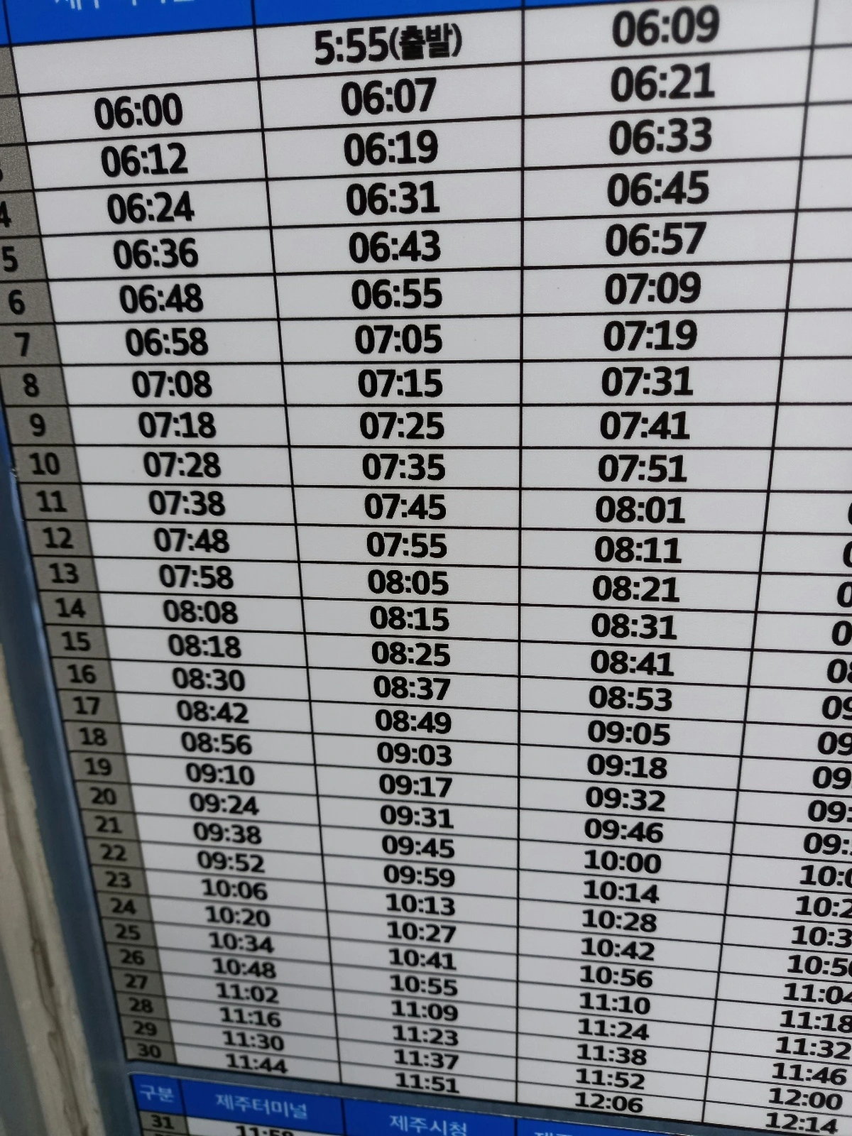 정류장에는 버스 출도착을 알리는 다음과 같은 운행시간표가 붙어있다.
