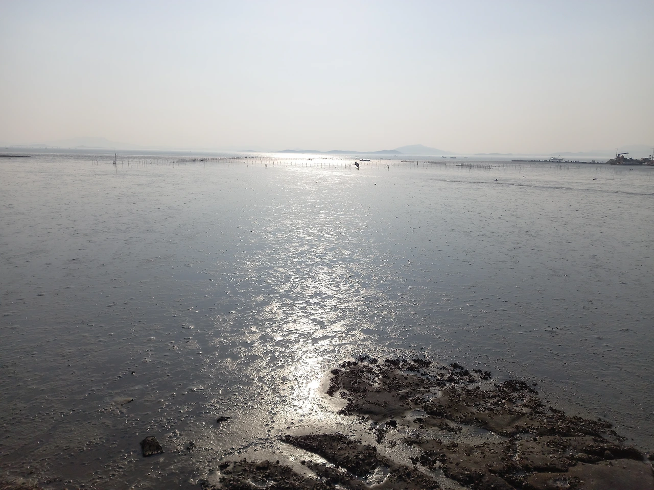 물이 빠져서 갯벌이 넓게 드러났는데.