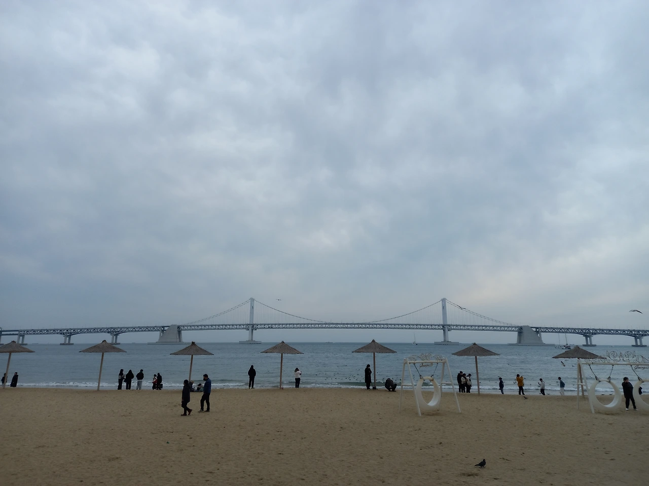 예전에 광안리 해수욕장에 왔을 때 바닷가 바로 앞에 먹고 노는 가게들이 너무 많아 내 취향은 아니구나, 했었는데.