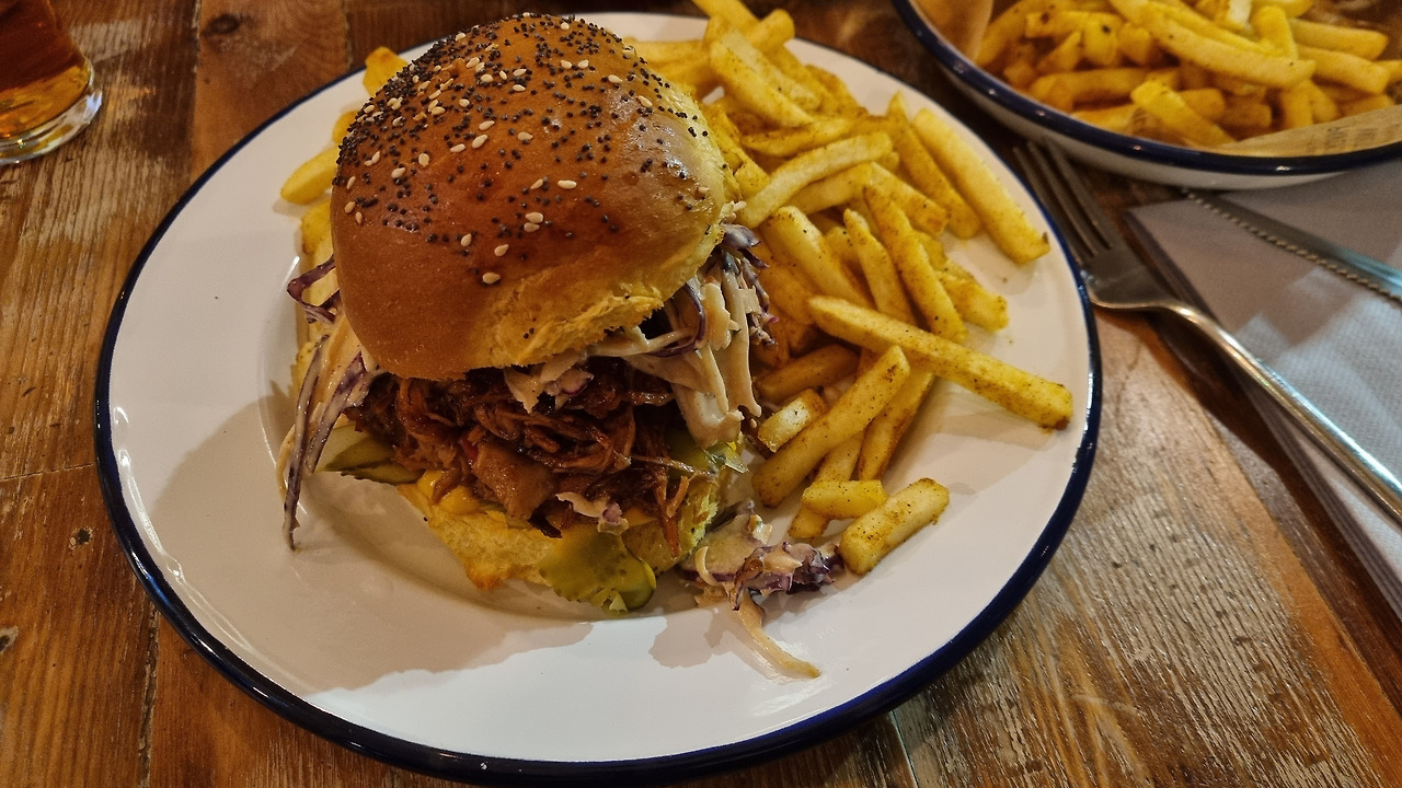 점심은 Pho라는 베트남 체인점에서 간단히 해결했는데, 학생할인이 돼서 서비스비용 정도는 빠졌다. 영국은 참 학생할인 잘해줘서 고맙다. 애 딸려 있는 40대 학생도 학생취급 해주니.. 저녁은 숙소에서 가까운 Pavement Vault라는 펍에서 먹었다. 이름처럼 인도 바로 옆에 붙어있는 금고와 같은 곳이었다. 버거는 풀드포크가 잔뜩 들어가 있었는데 참 맛있게 먹어서 기억에 남는다. 펍에 오면 항상 느끼지만 맥주 한 잔 들고 몇 시간씩 있는 걸 보면 신기하기도 하다. 안주 없이 몇 잔씩 마시는 사람들도 신기하고....