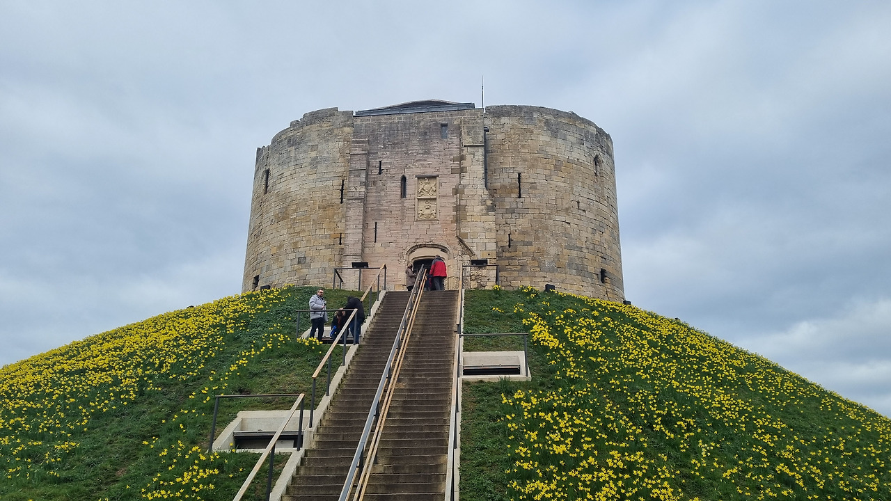 다음날 클리포드 타워(Clifford's Tower)에 올라갔다. 입장료가 있긴 한데 이곳에 올라가면 요크 전경을 볼 수 있어서 좋다. 학생이라면 할인되고, English Heritage Member(영국 내 역사적인 장소를 자주 갈 예정이라면 가입 추천, 성인 기준 66파운드만 내면 400곳 이상을 방문할 수 있음)라면 무료인 곳이다. 봄을 알리는 수선화가 타워 주위로 피어있지만 날씨가 흐려서 조금은 아쉽다.