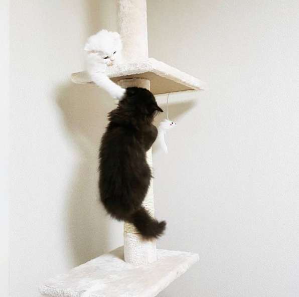 고양이에게 스크레쳐 취향이 있다면 웃기게 들릴 수도 있겠지만, 마리는 스크레쳐를 딱히 가리지 않는 편인 것 같다. 반면 라리는 삼줄로 된 굵은 스크레쳐를 선호한다. 발톱이 더 커서일 수도 있고 정말 그냥 취향일 수도 있는데 아무튼 집에 있는 캣타워로는 그의 강력한 욕망을 풀어주기 힘들었던 것 같다. 더군다나 라리의 경우 팔을 위로 끝까지 쫙 뻗어 손톱을 긁는 편인데 기존의 캣타워는 라리에게 작아져 팔을 뻗으면 스크레쳐가 감긴 부위가 아닌 캣타워의 나무기둥 부분을 긁게 됐다. 쉽게 말하면 시원하지 않다는 소리다.