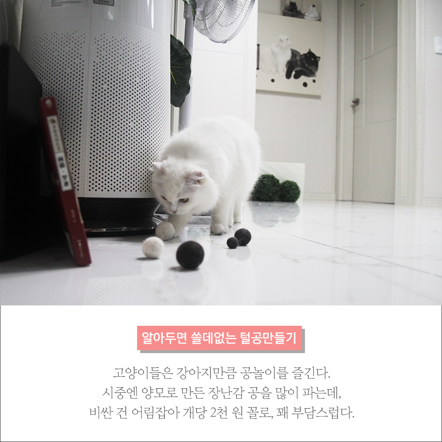 시중엔 양모로 만든 고양이 장난감 공을 많이 파는데,