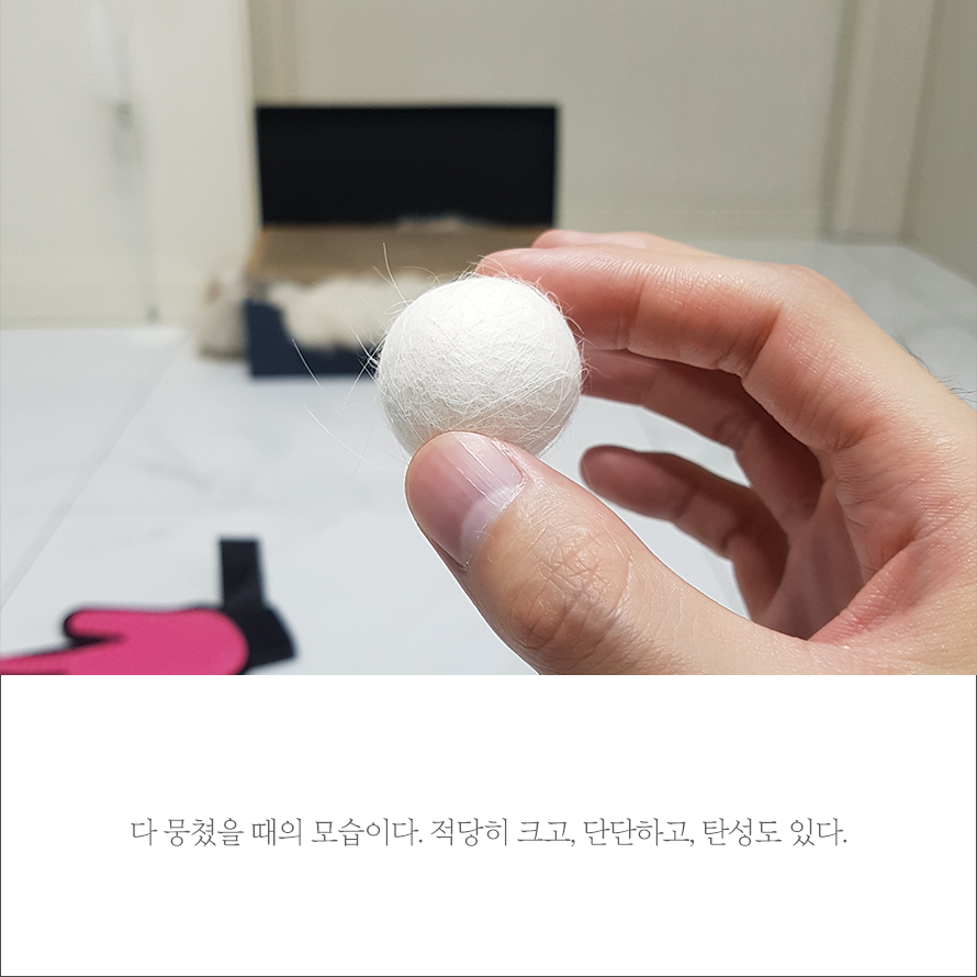 다 뭉쳤을 때의 모습이다. 적당히 크고, 단단하고, 탄성도 있다.