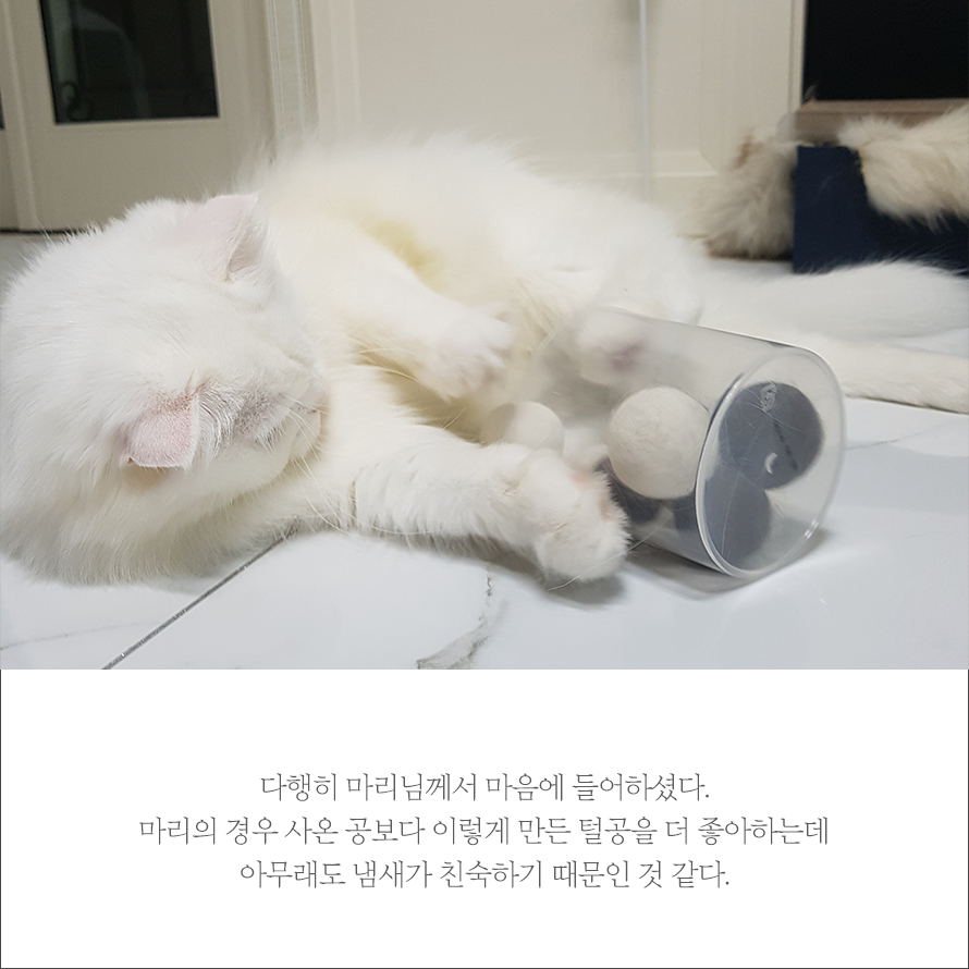 마리의 경우 사온 공보다 이렇게 만든 털공을 더 좋아하는데