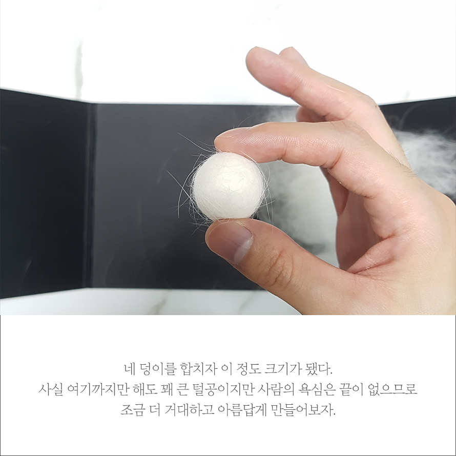 사실 여기까지만 해도 꽤 큰 털공이지만 사람의 욕심은 끝이 없으므로 조금 더 거대하고 아름답게 만들어보자.