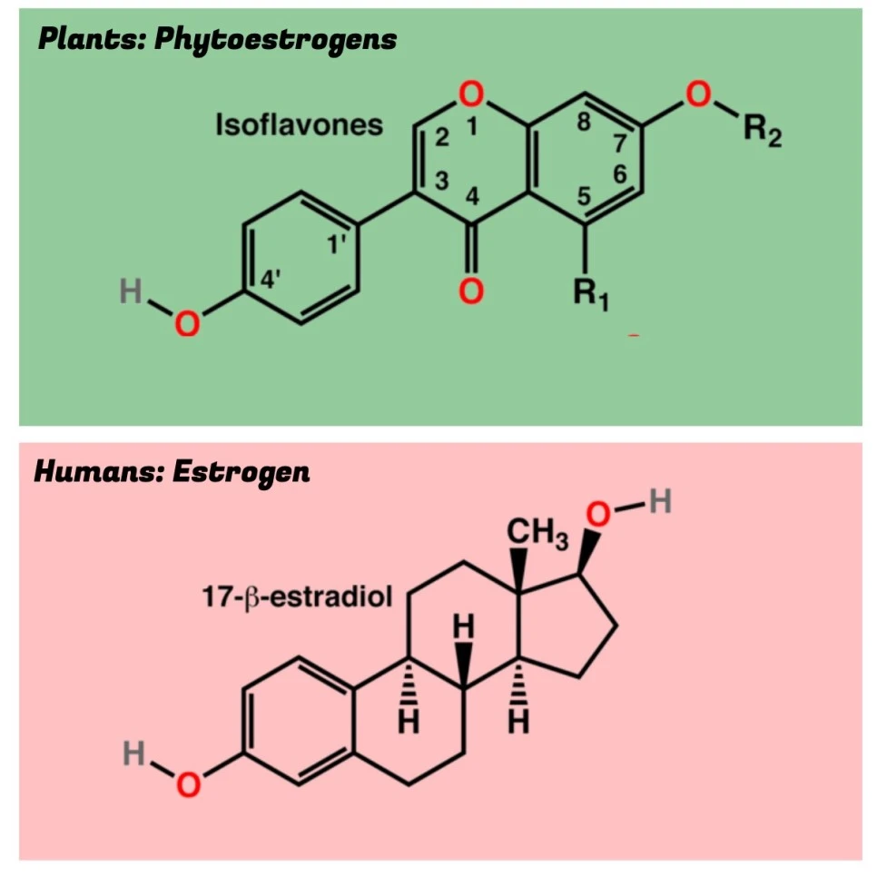 이제 3번. 석류에는 에스트로겐이 과연 많을까? 이게 참 묘하다. 맞다고 하기도 애매하고 틀렸다고 하기도 애매하다. 첫번째 이유는 석류에 있는 성분이 정확히 에스트로겐은 아니기 때문이다. 흔히 광고를 보면 식물성 여성호르몬 또는 식물성 에스트로겐이라고 하는데 정확히 말하면 이소플라본이라는 물질이 석류에 있는 성분이다. 이소플라본은 에스트로겐의 전구물질이다. 갑자기 무슨 소린가 싶을테니 풀어서 설명하겠다. 생화학에서 전구물질이란 선행 화합물을 의미하는데, 이소플라본이라는 물질이 화학반응을 통해 에스트로겐으로 변한다는 말이다. 따라서 석류에 에스트로겐이 많다는 말은 엄밀히 따지면 거짓말이다.