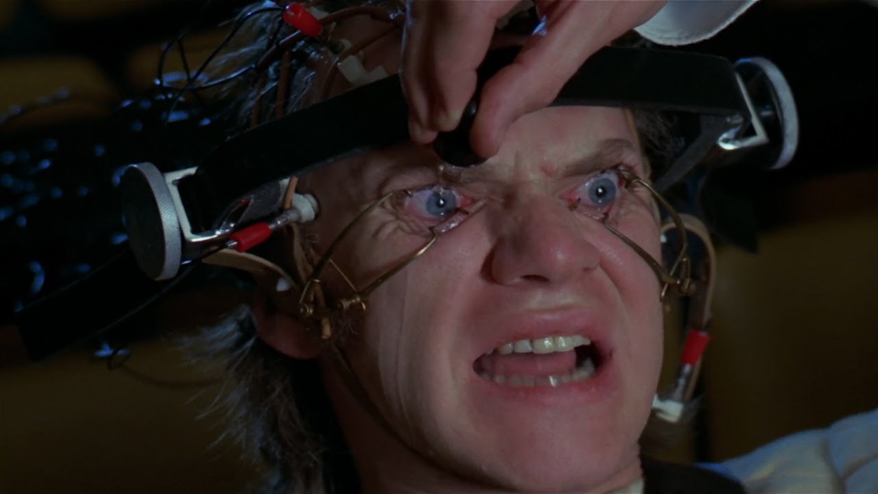 영화에서는 위협적인 무조건 자극(약물)을 조건 자극(폭력과 섹스) 간의 연합 학습을 꾀한다. 즉 폭력과 섹스를 떠올리기만 해도 구토와 경련을 일으키게 된 것이다. (공포 조건화에서는 이런 조건반응을 공포 반응이라고 한다.)