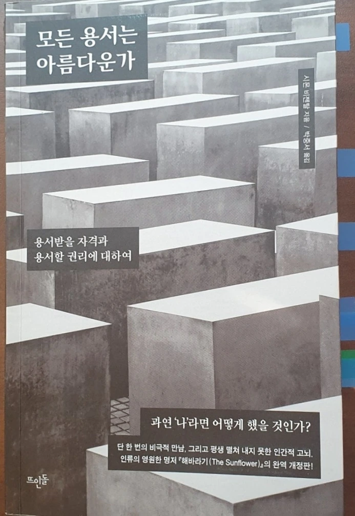 책은 유대인 시몬 비젠탈이 수용소에 있을 때 직접 겪은 일이었다. 그가 노동을 하고 있을 때, 간호사가 그를 어떤 독일병사에게 데려간다. 독일 병사는 온몸에 붕대를 감고 죽음이 임박해 있다. 독일인이 유대인에게 하는 말. 누구든지 유대인을 만나면 자기 행동에 대해 용서를 빌고 싶었다고. 당신이라면 그 독일인을 용서할 수 있는지에 관한 책이었다.