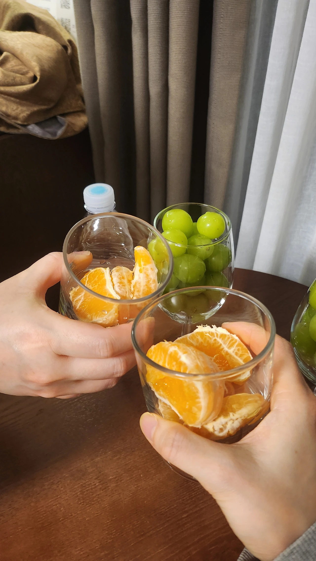 그런 친구를 위해 나는 과일을 준비했다. 샤인머스캣과일주와 천혜향위스키를 만들었다.