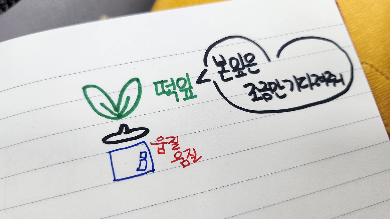 짜잔. 떡잎 귀엽게 웃는다.