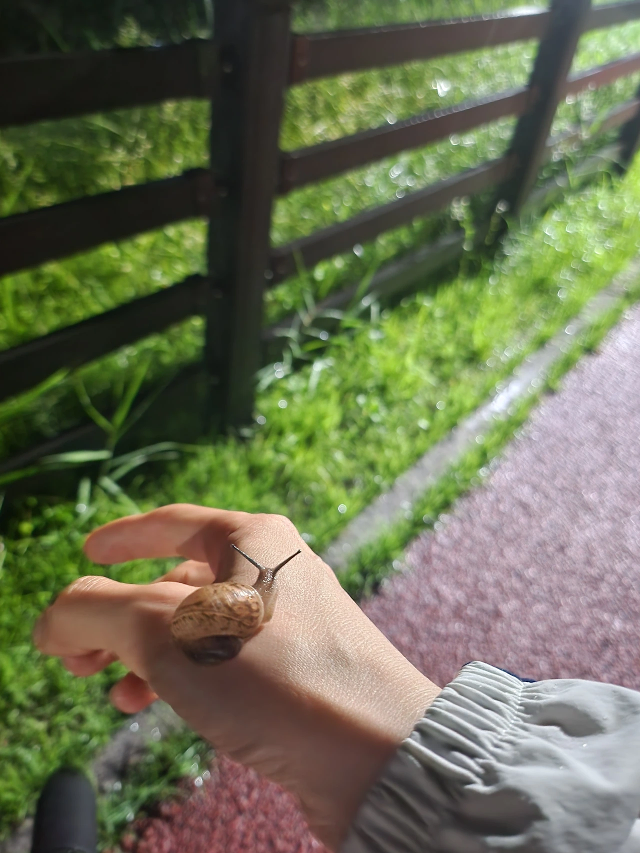 해 지고 비 그쳤어요. 바닥이 아직 촉촉해요. 물이 뛸 것 같으니 검은색 운동복을 입고 나가요.