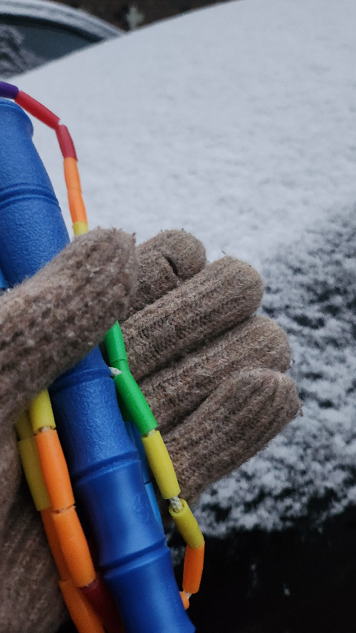 아침. 눈. 겨울과 함께하는 줄