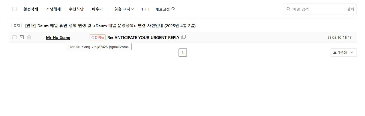 이 사람이 보낸 스팸 메일을 한눈에 포착할 수 있었습니다.