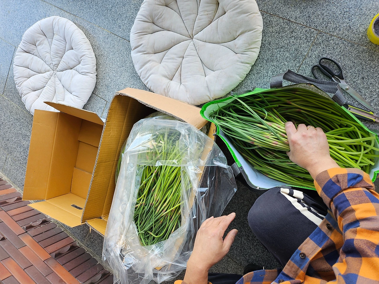 매일 마늘쫑 뽑으러 마늘밭으로 다시 출근하는 남편