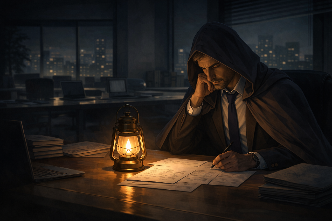 은둔자처럼 낮은 불빛 하나로