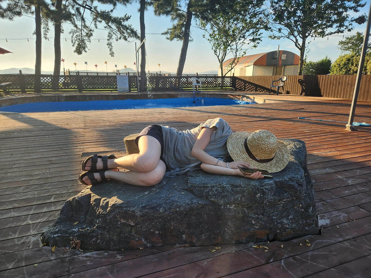 지금은 수국이 피는 동네 공원이며 카페를 다니며 익숙해진 곳이지만 돌아와 여름휴가를 오면 어쩔 수 없이 마음은 편하다. 굳이 즐겁지 않은 일과를 벗어나 사치스럽게 시간을 쓴다고 편한 게 아니라 자란 땅 자란 이들의 품에서 양수 속의 태아처럼 웅크렸기 때문이다. 과제를 하다가 컴퓨터 앞에 웅크리고 앉아 게임 속에 조성해 둔 물가를 멍하니 보던 기억이 난다. 짧고 희미한 향수였는지도 모르겠다.