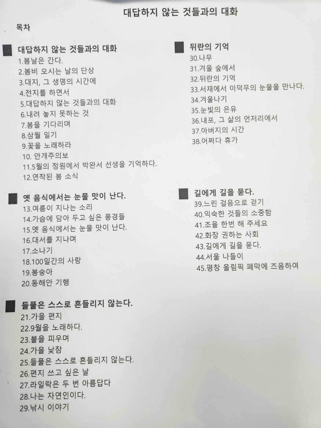게으름이 한눈에 드러났습니다. 겨우 45편의 글을 무려 햇수로 6년 동안이나 썼으니 심혈을 기울여 벽화를 그리는 고전 화가도 아니고 이건 좀 너무 했다는 자성의 목소리가 들렸습니다.