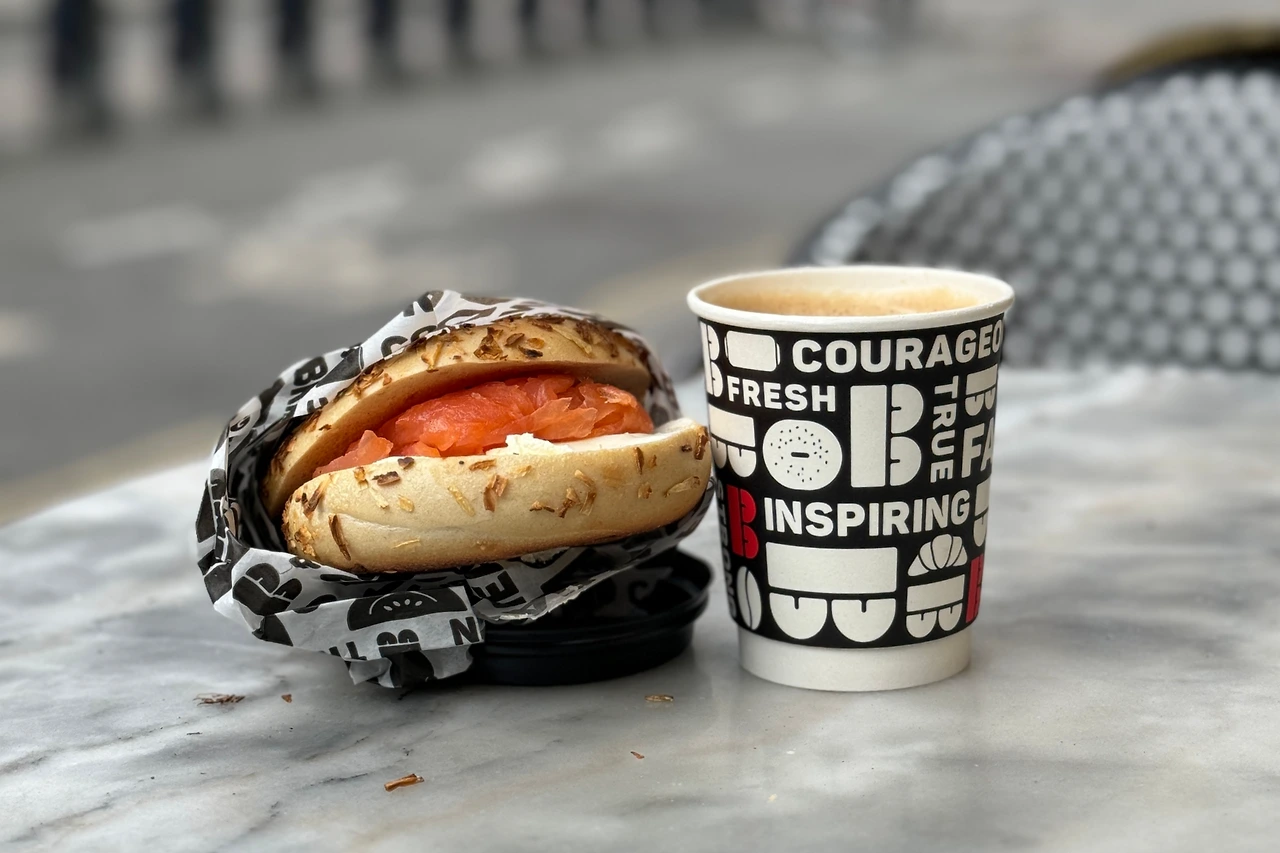아침을 먹으러 온 곳은 소호거리에 있는 베이글 맛집 B Bagle. 아침 한정으로 베이글을 주문하면 커피를 공짜로 먹을 수 있다고 해서 버스를 타고 서둘러 왔다. 하지만 연락을 기다리며 꾸물거린 탓에 9시가 넘어서야 도착했고, 결국 커피를 따로 주문해야 했다. 까짓 거 얼마나 할까 했는데, 아침으로만 만원 넘게 지출을 하게 된 정말 살인적인 런던의 물가였다.