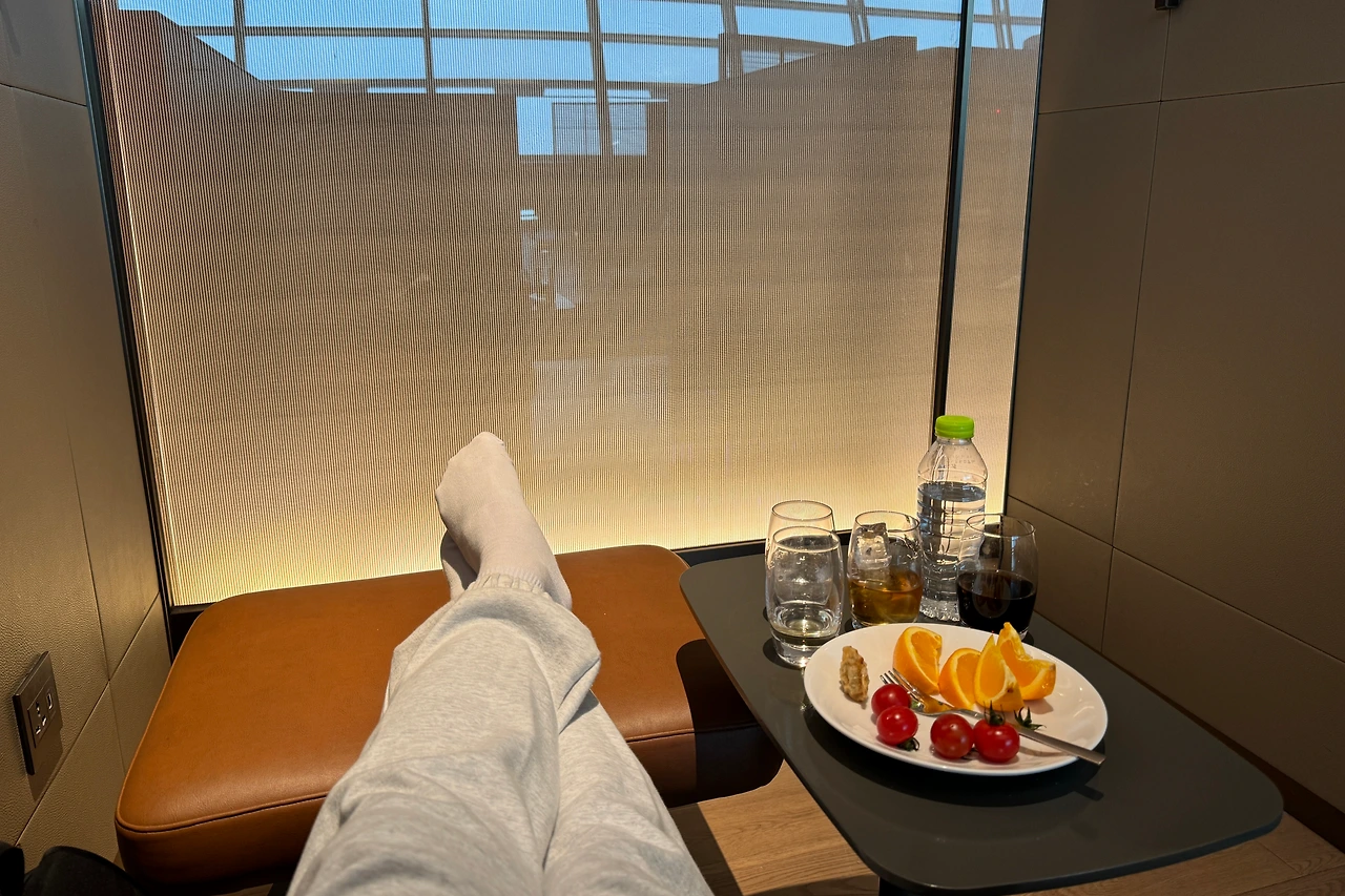 이대로 떠나기 너무 아쉬워 탑승시간이 조금 지나서야 라운지를 나섰고, 게이트에 도착하니 Final call이 반짝이고 있었다. 일찍 탑승해야 좌석이나 전경 등 사진을 찍을 텐데, 늦장을 부린 대가였다. 하지만 후회는 없었다. 라운지에서의 풍요로움과 느긋함이 낯설지만 행복했다. 누군가 재력의 증명은 비행기를 탈 때 드러난다고 하던데, 그 말이 딱 맞다 싶었다.