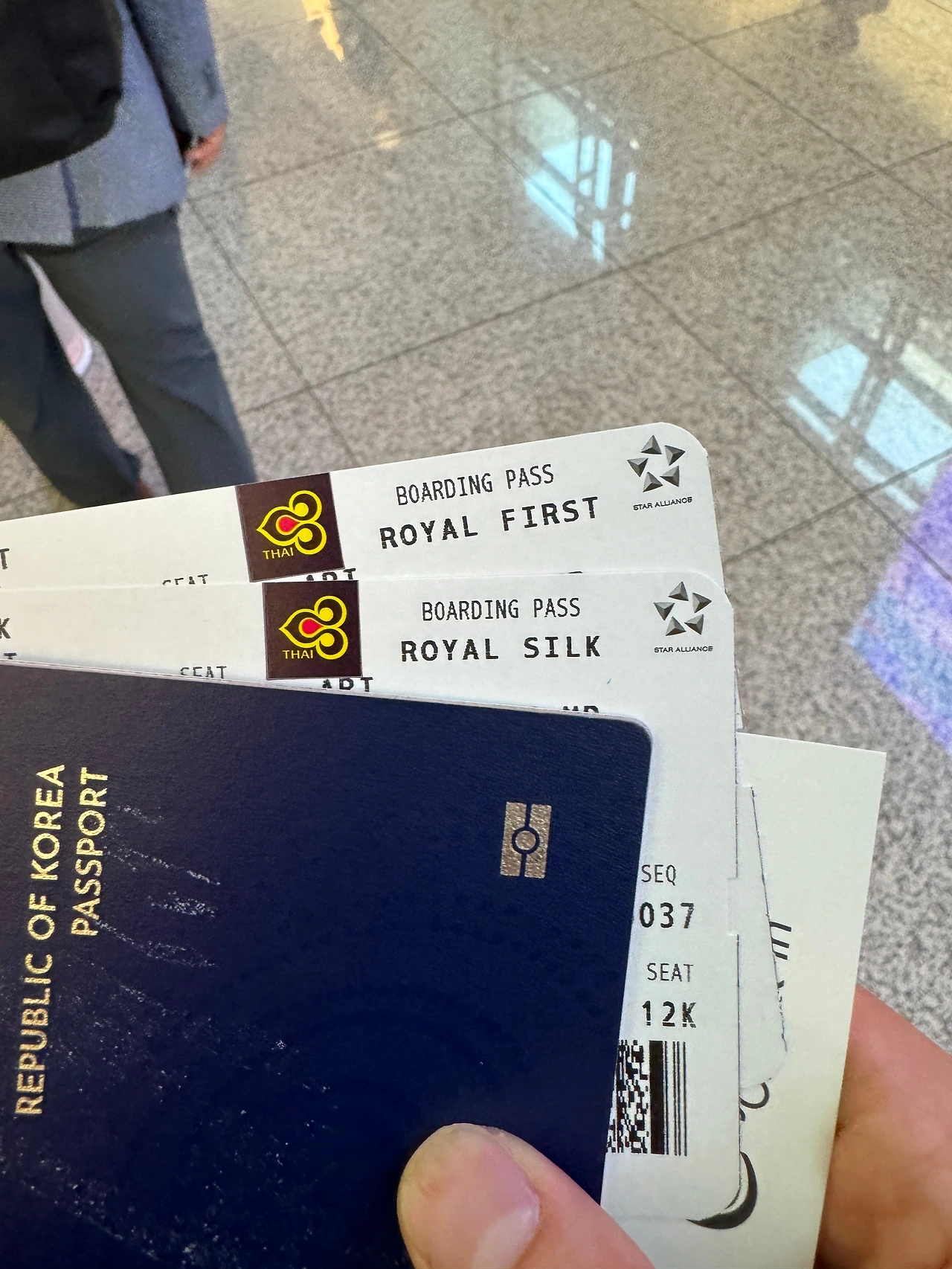 공항에는 예정보다 조금 늦게 도착했다. 서둘러 체크인을 마치고 수화물을 부쳤다. 오래된 29인치 캐리어에는 주황색의 Priority가 붙었고, Royal Silk와 Royal First라고 적힌 두장의 티켓이 손에 쥐어졌다. 씻지 않아 모자를 깊게 눌러쓰고, 편한 비행을 위해 츄리닝에 슬리퍼를 신었지만 왠지 모르게 어깨는 자꾸 올라갔다.