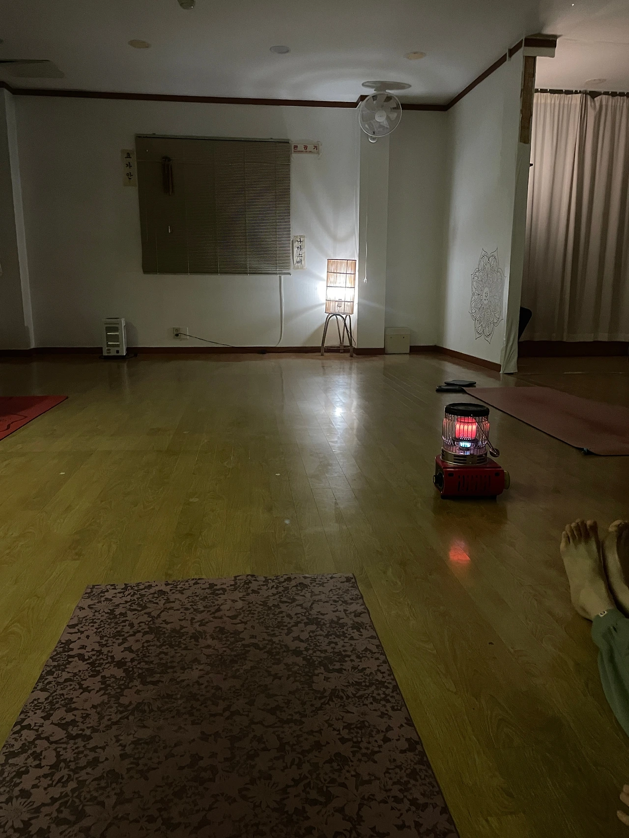 요가원은 송리단길 끄트머리 쪽에 있는 한적한 대로변 위치해 있었다. 입구에는 차를 내리는 공간 겸 리셉션이 있었는데, 안으로 들어가자 어둑어둑한 가정집 같은 공간이 나왔다. 작은 난로와 릴렉싱 음악이 흘러나오는 살짝 따뜻한 그 공간의 느낌이 묘하지만 아늑하고 좋았다.
