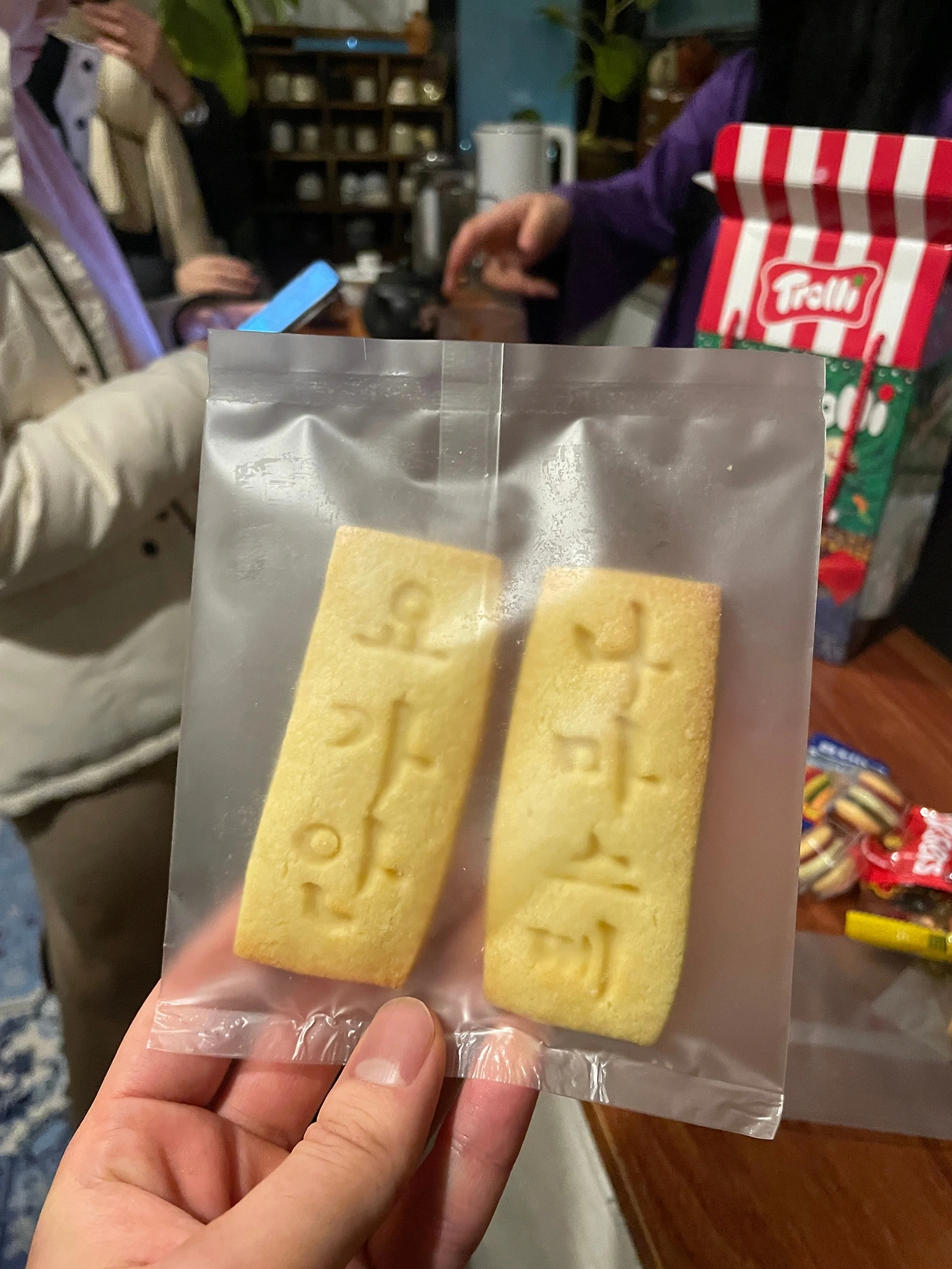 옷을 갈아입고 나오자, 회원 중 한 명이 구운 거라며 쿠키를 하나씩 나눠주셨다. 쿠키에는 나마스떼라는 단어가 쓰여있었다. 타인과의 연결성과 상호존중을 의미한다는 나마스떼. 이들에게 요가는 어떤 의미일지, 무언가를 정신적으로 믿는다는 건 무엇일지 궁금해졌다.
