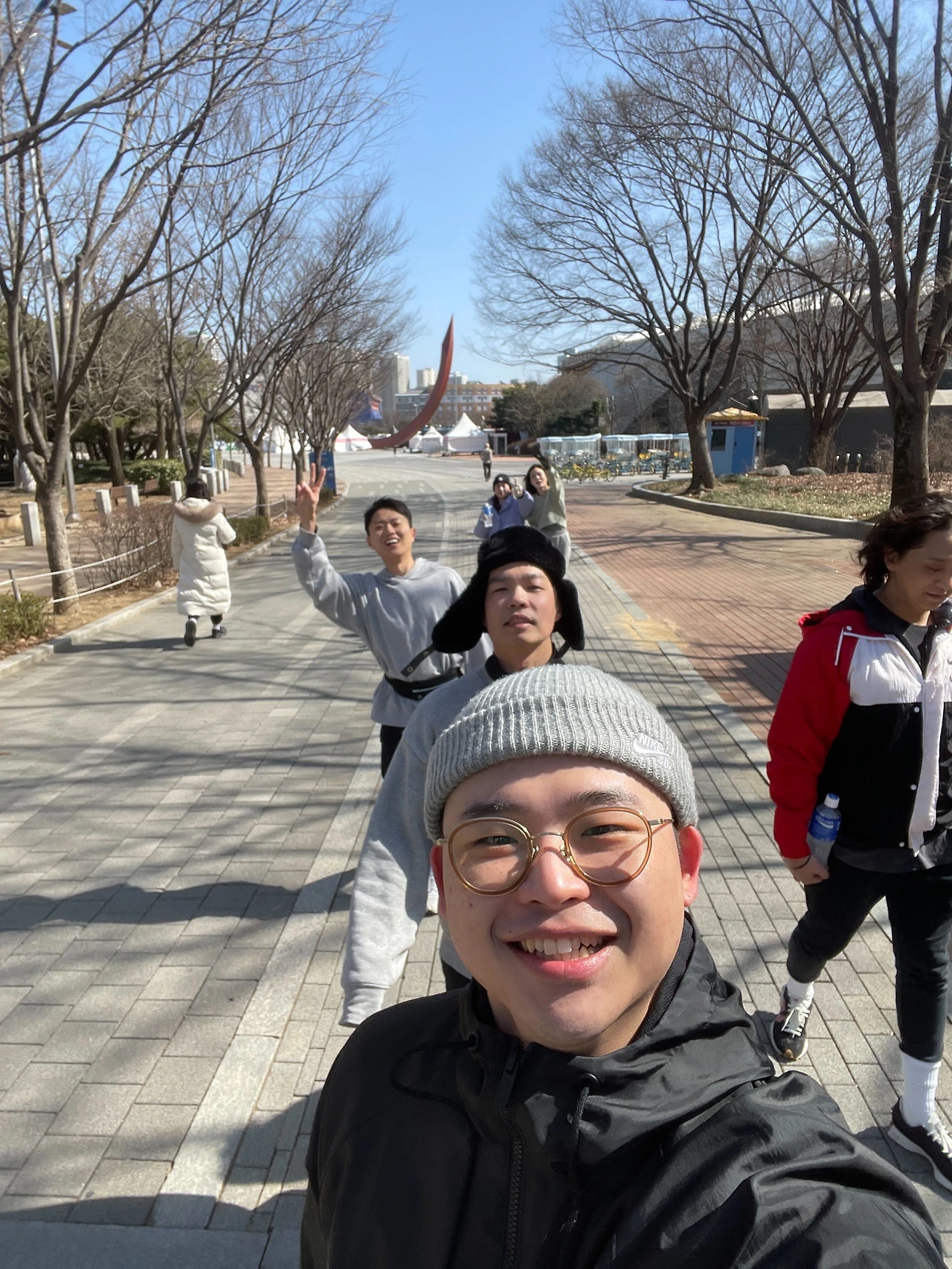 삼일절이 다가왔고, 영업팀의 건민까지 합세해 우리의 러닝 장소, 올림픽 공원에 다시 한번 모였다. 나는 다음날 일본 여행을 떠나는 일정이었지만, 처음 느낀 그 러닝하이를 다시 한번 느껴보고 싶었다. 그저 안 해본 걸 한 번 해봐서 느낀 뿌듯함이었는지, 러닝이라는 운동이 가져다준 느낌인지를 알아볼 계획이었다. 그렇게 무리해서라도 한 번 다시 러닝을 해보고 싶었다.