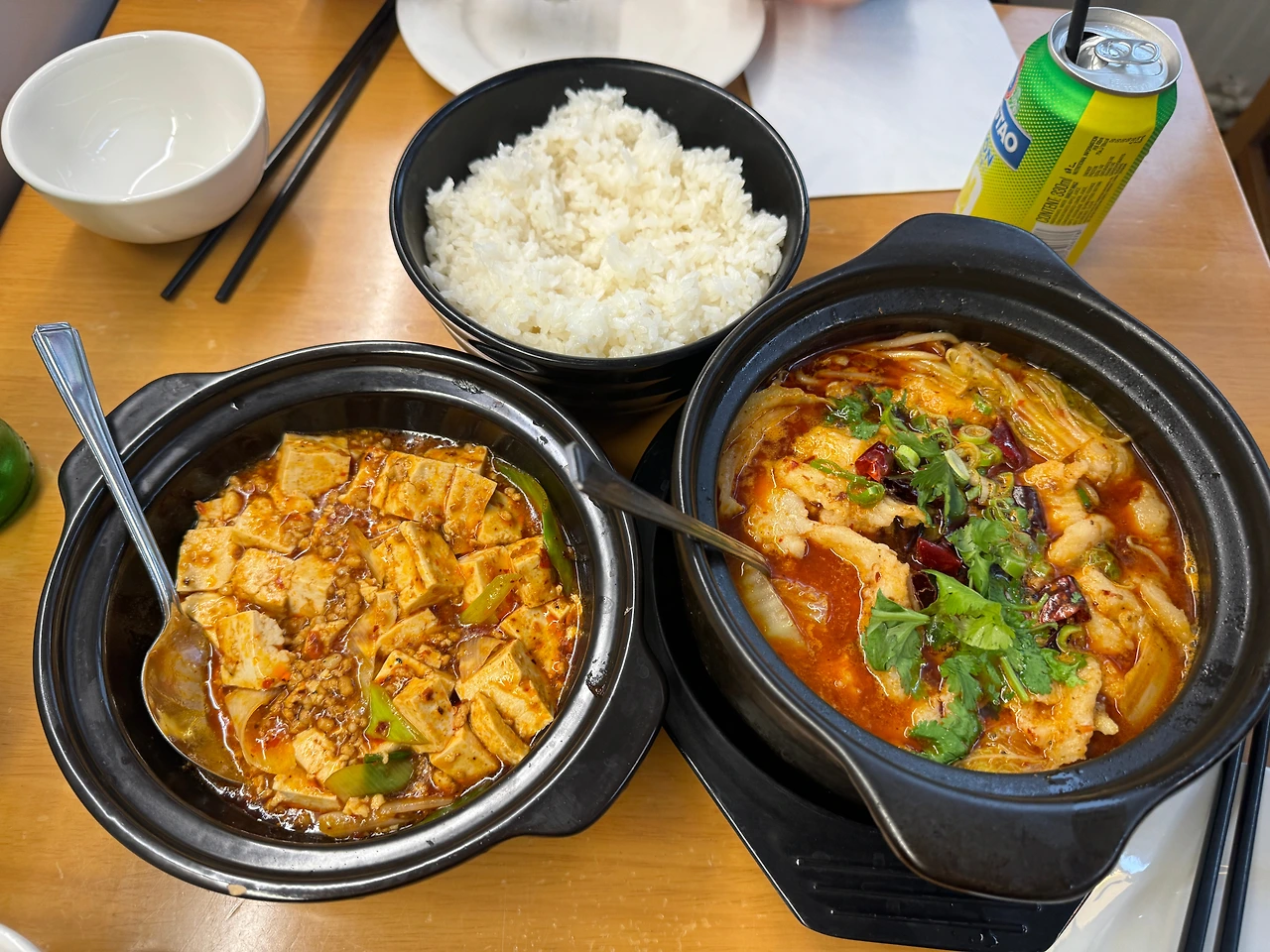 메뉴는 Shui Zhu Yu (水煮鱼)와 마파두부. 정말 오랜만에 먹은 마라 매운맛이 너무 맛있었다. 한국에서도 일주일에 한 번은 마라를 먹던 터였다. 다른 손님은 대부분 중국인인 찐 중국집이었다. 친구는 신이 났는지 사진도 찍어달라고 하고, 3 공기는 되어 보이던 밥도 싹싹 비워냈다. 기분이 나아진 듯해 다행이었다.