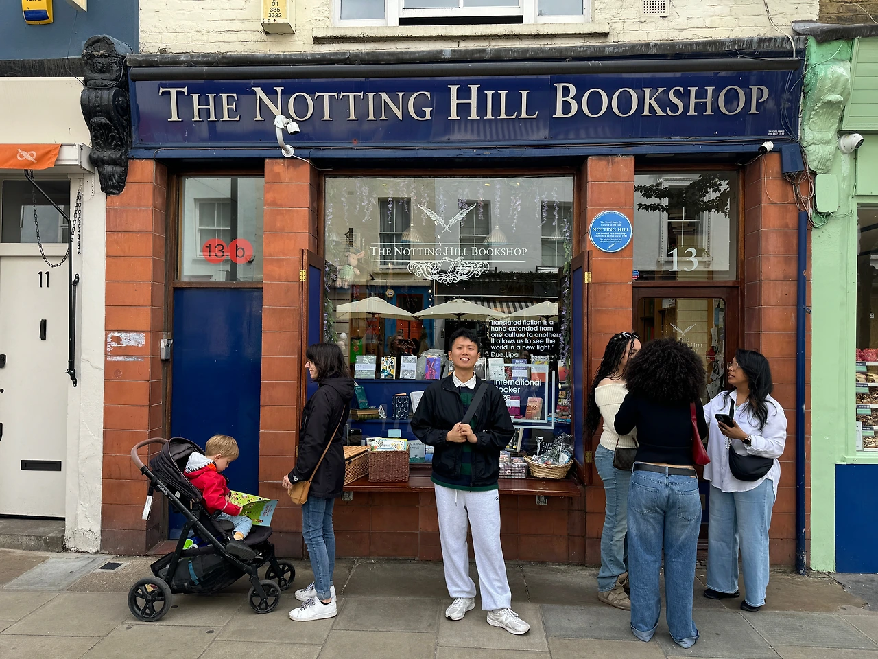 사진촬영에, 마켓 구경까지, 많이 힘들었는지 친구가 카페에서 잠시 쉬어가자고 했다. 꽤 팬시해 보이는 줄이 긴 일본 빵집 앞에 자리를 잡고 앉았다. 빵은 그럭저럭 이었는데, 바로 옆에 노팅힐 영화의 배경인 노팅힐 서점이 있어 사진을 찍을 수 있었다. 영화도 미리 보려고 다운로드해놨는데, 결국 게으름에 보지도 못한 게 생각나 아쉬웠다.