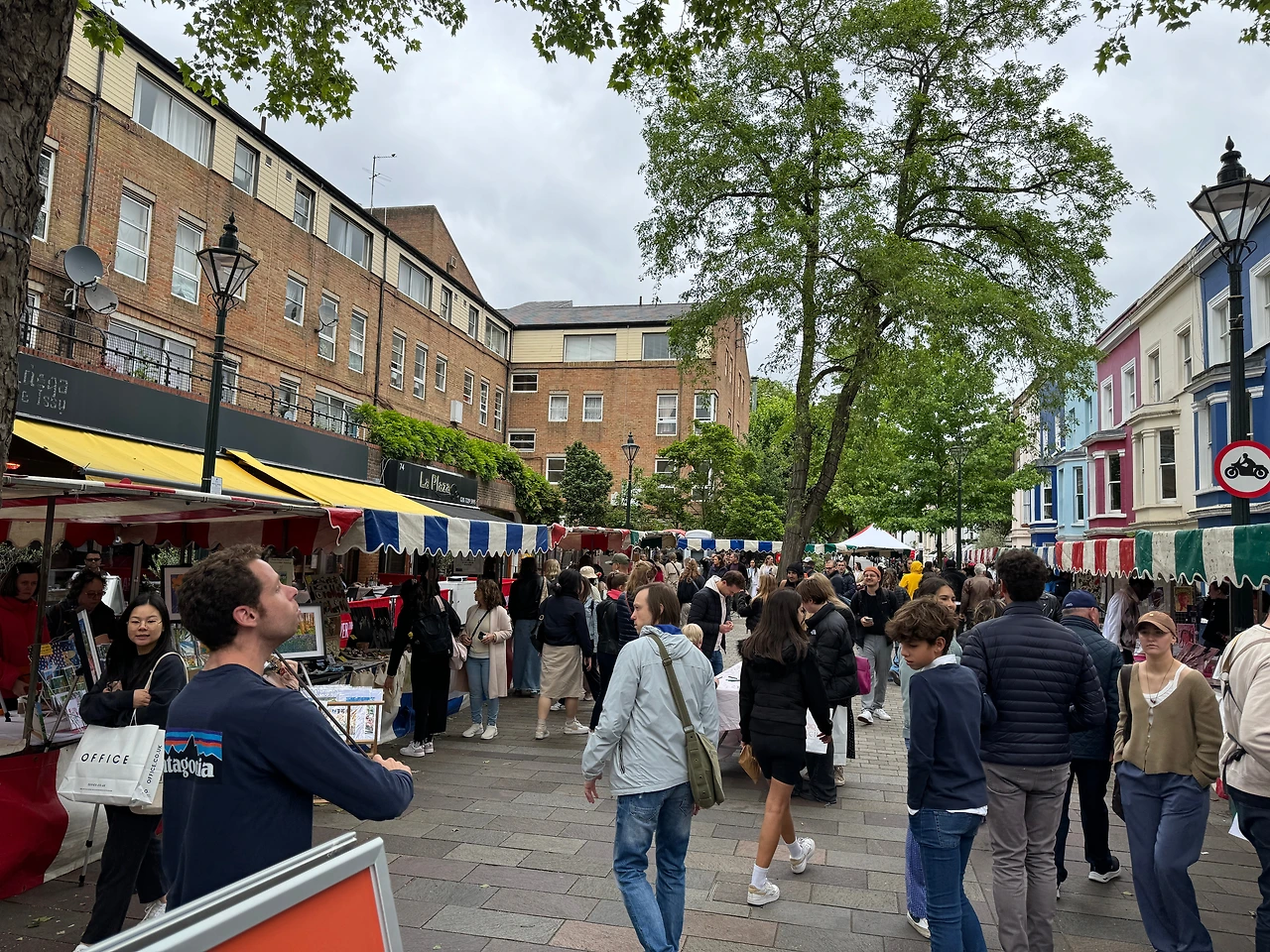 친구 짐도 호스텔에 맡기고 점심 행선지인 노팅힐로 향했다. 영화 노팅힐의 배경이 되는 곳이었다. 포토벨로거리에는 거의 매일 마켓이 서는데, 토요일에만 앤티크 마켓이 서서 꼭 오늘 와야만 한다고 했다. 역 근처에는 사람이 많이 없었는데, 확실히 마켓 근처에 오자 관광객이 많았다.