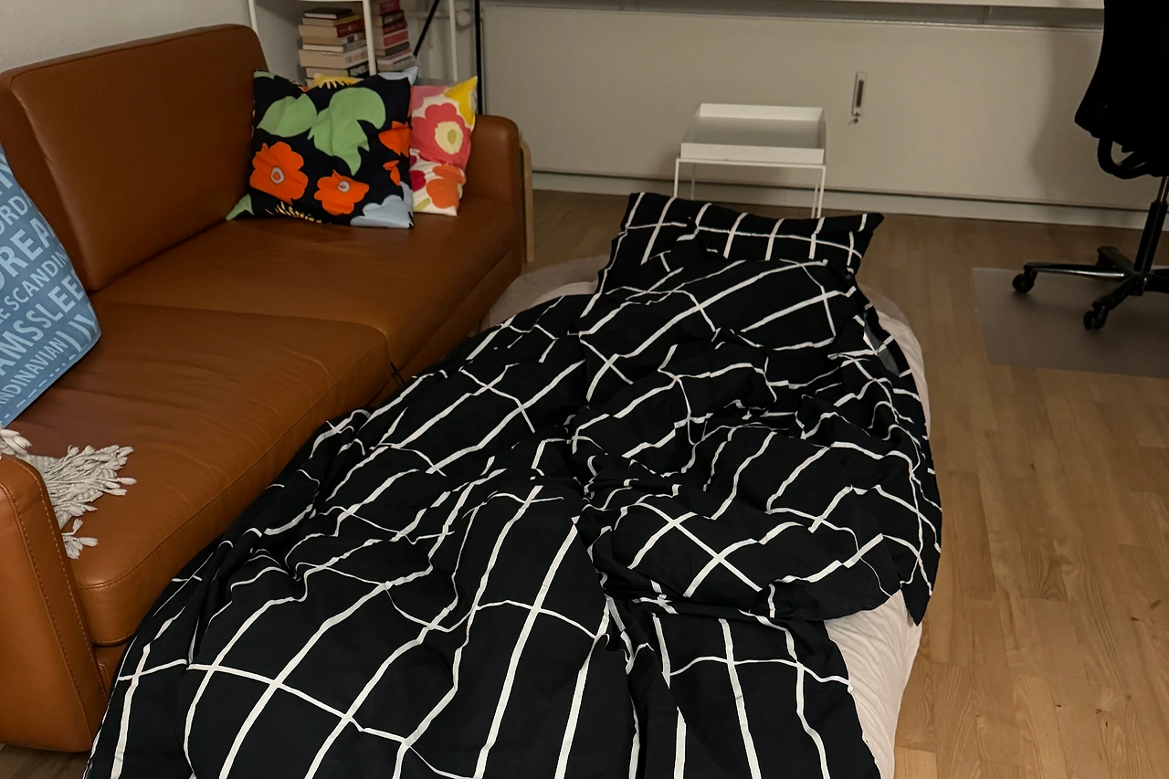친구네 집에 돌아오니 친구가 저녁으로 제육볶음을 요리해서 기다리고 있었다. 쌈까지 제대로였는데, 누군가와 같이 살면 이런 느낌일까 묘하게 행복한 느낌이 들었다. 저녁 먹으며 수다를 떨고는 친구가 게스트가 오면 사용하기 위해 중고마켓에서 구매했다는 만오천 원짜리 에어매트를 설치했다. 며칠간 나만의 잠자리가 되어줄 꽤 훌륭한 침대였다.