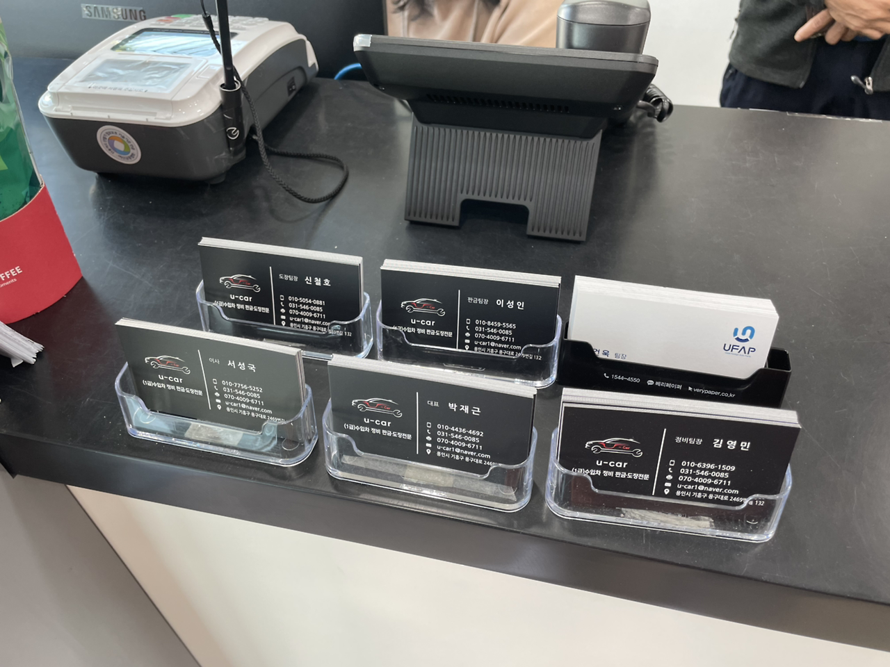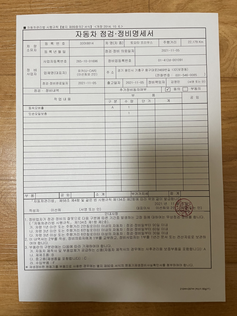 유카 주소는 경기도 용인시 기흥구 용구대로2469번길 132입니다.(전화 031-546-0085) SK주유소 바로 옆에 있습니다. 입구에 들어서자 ‘프리우스 오너스클럽 협력사’ 큰 플랜카드가 보입니다. 입구에 주차된 프리우스도 반가웠습니다. 사장님께 4.5세대 무상 정비 이벤트 당첨자라 말하니 반갑게 맞아주십니다.