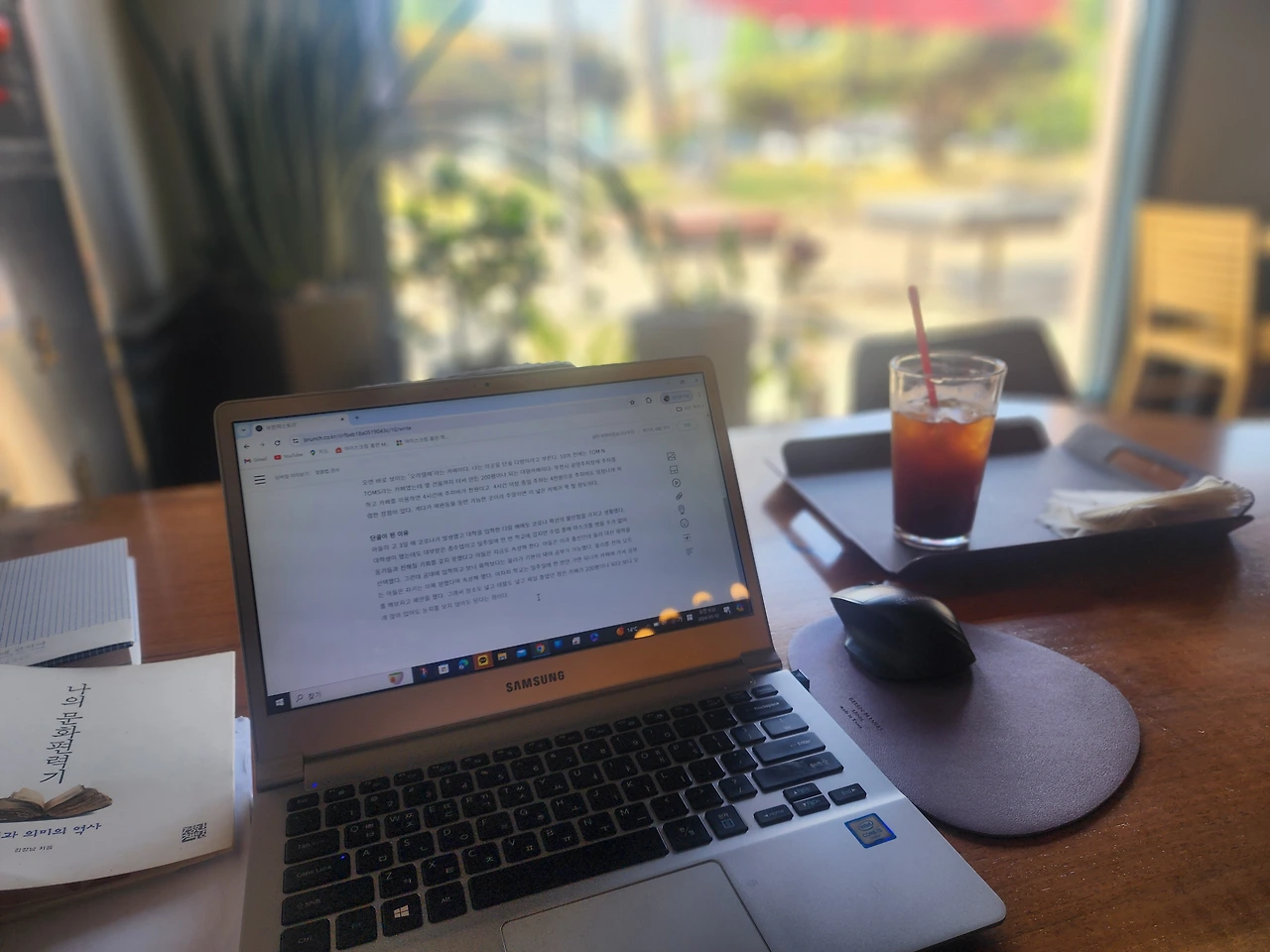 단골 다방은 장소가 넓다 보니 테이블 크기도 크고 테이블 간 간격도 멀어서 일에 집중하기가 좋다. 제일 좋은 점은 카페가 200평이나 되다 보니 오래 앉아 있어도 눈치를 보지 않아도 된다는 점이다. 그래서 시간에 구애받지 않고 일할 수 있다. 아들은 고등학교 물리 교재를 사서 인터넷 강의를 들으며 차근차근 공부를 하기 시작했다. 아들은 백색소음에 둔감해서 스터디 카페나 독서실보다는 오히려 카페에서 공부하는 것이 더 집중이 잘 된다고 했다. 아들이 학교에 가는 금요일만 빼고 거의 매일 카페에서 공부를 했다. 하루는 카페 여사장님(부부가 함께 운영하신다)께서 아들하고 공부하는 모습이 보기 좋다며 서비스로 조각 케이크를 주셨다. 아들이 동안이고 체격이 작아서 고등학생인 줄 알았다며 대학생 아들하고 같이 공부하는 엄마가 너무 보기 좋다고 하셨다. 여사장님은 기계공학과 출신이라고 하셨다. 그래서 아들이 공부하는 것도 물어보고 개인적인 얘기도 조금씩 하면서 친해졌다. 카페에는 손님들이 읽을 수 있는 여러 종류의 책들이 많다. 나는 좋아하는 책이 있으면 한 권 더 사서 카페에 선물하기도 했다. 그러면 또 사장님은 서비스를 주시고 서로 고마운 마음을 주고받으며 단골이 되었다.