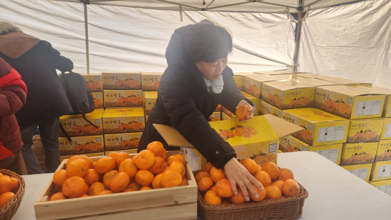 윤석열 탄핵안이 가결되기 전이었는데 친한 선배가 저에게 귤 값은 본인이 지불할테니 귤 다섯 박스를 가지고 여의도 국회 앞으로 와서 고생하는 시민들께 나눠 드리라고 했어요. 저는 제주도 서귀포에 살고 있는데 귤 다섯 박스를 가지고 서울까지 오라니 처음엔 이게 무슨 소린가 싶다가 생각해보니 너무 좋은 생각인거에요. 그래서 같은 생각을 가진 사람들이 많이 참여하면 좋겠다는 생각이 들어 급하게 SNS에 글을 올렸습니다. 예상외로 상당히 많은 분들이 뜻을 모아 주셔서 12월 4일 125박스를 나눔했습니다.