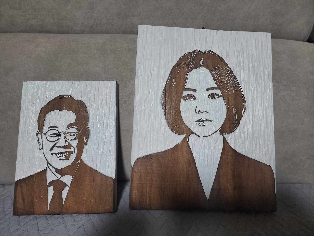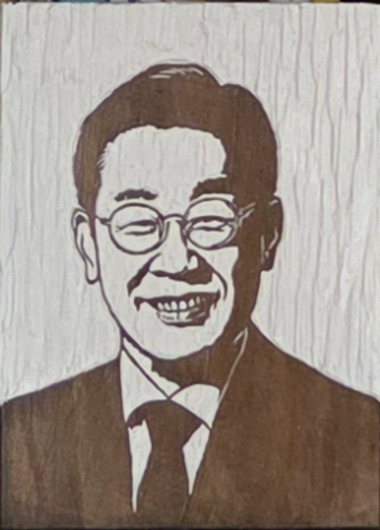 그런데 내 것보다 조금 더 작은 판화 하나가 더 있는 것이 아닌가? "이건 뭐지?"하고 뜯어보고 나는 "어머! 어머!" 소리를 지르며 박수를 쳤다. 내가 좋아하는 정치인 지금은 대통령이 되신 당시 이재명 더불어민주당 대표님 얼굴 판화를 하나 더 보내 주신 거다. 작가님과는 페이스북 친구로 교류했고 인사조차 나눈 적이 없었는데 나한테 이런 귀한 작품을 선물해 주시다니 의아하면서도 정말 감사했다. 사실 나는 내 얼굴 판화보다 이재명 대통령 얼굴 판화가 더 좋았다.